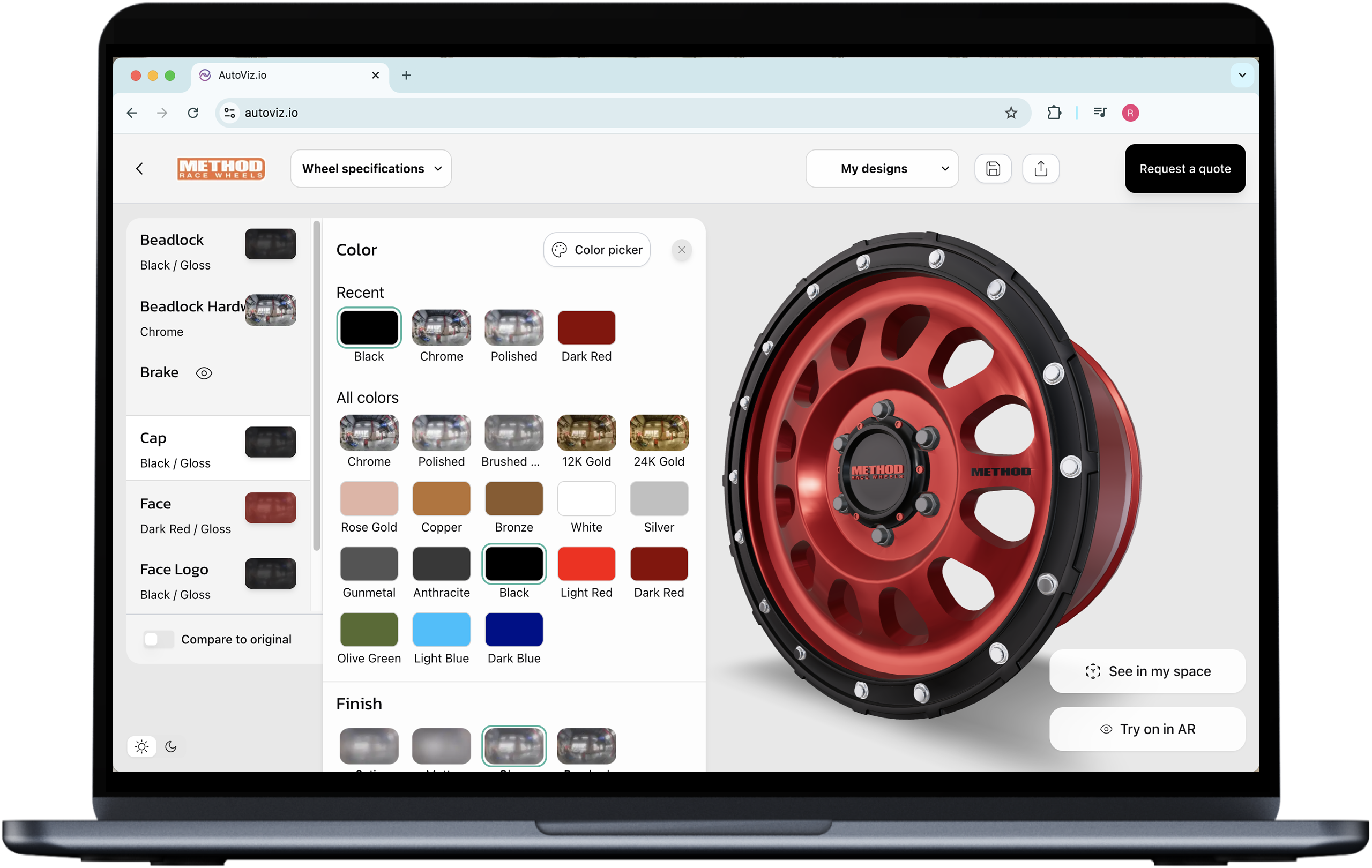 With just one line of code, you can add the wheel configurator to your product pages, or upgrade to the Premium Suite for a fully-integrated experience, no code necessary.